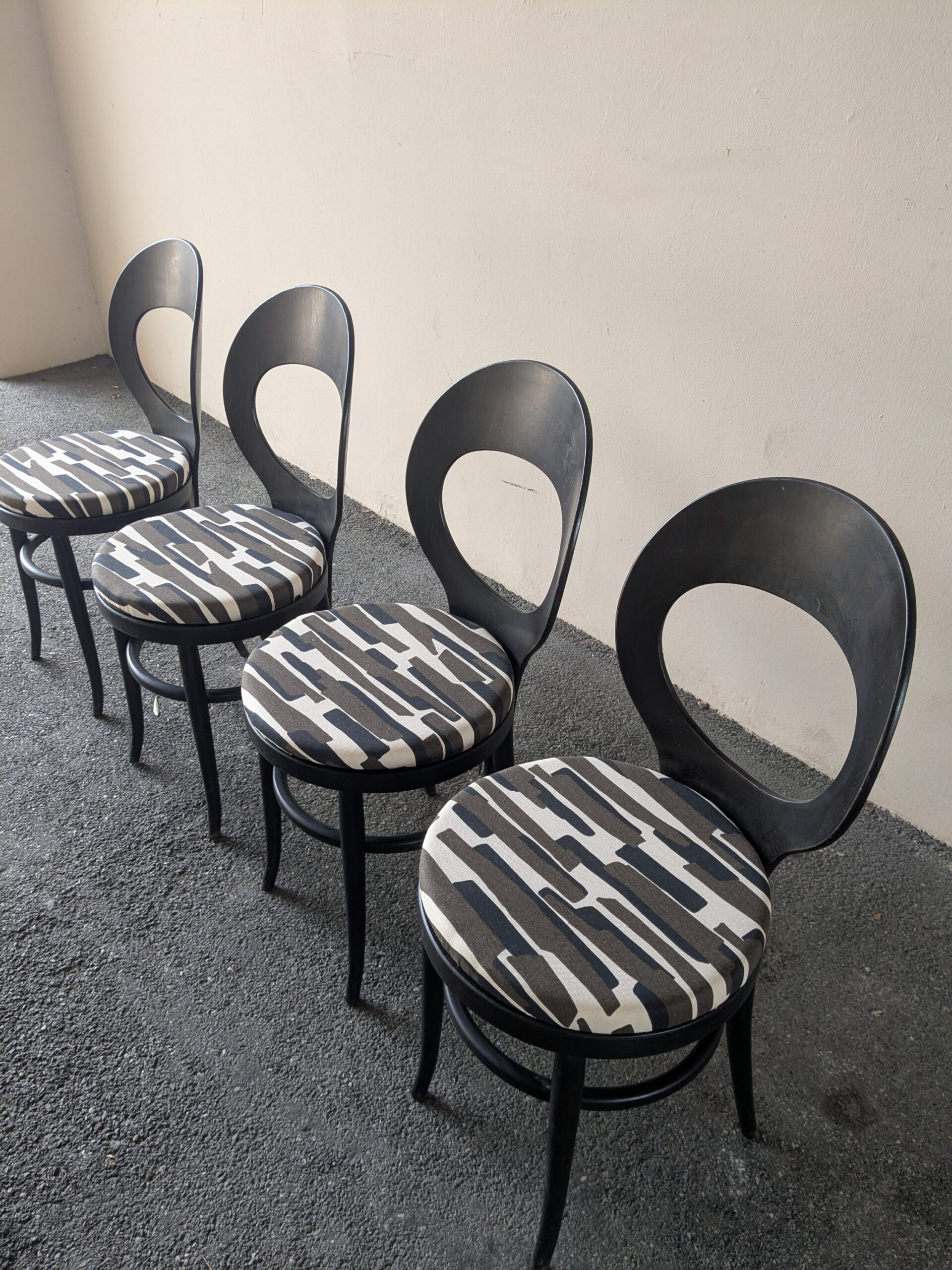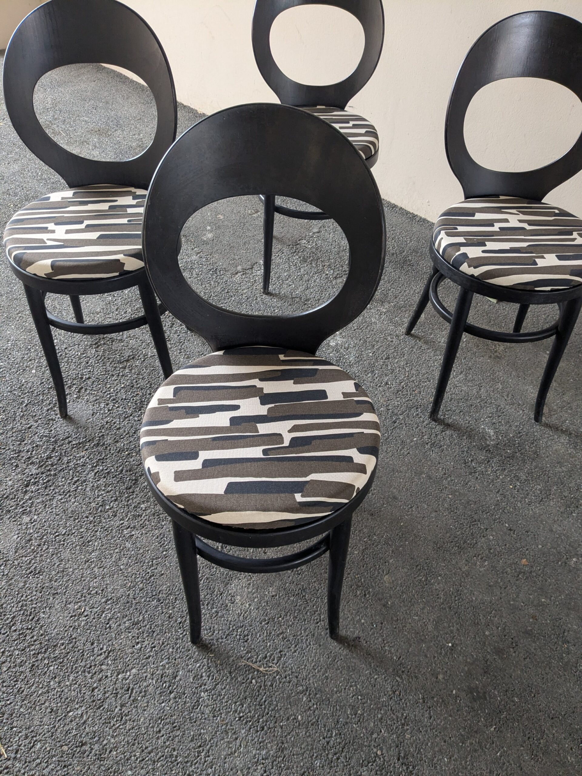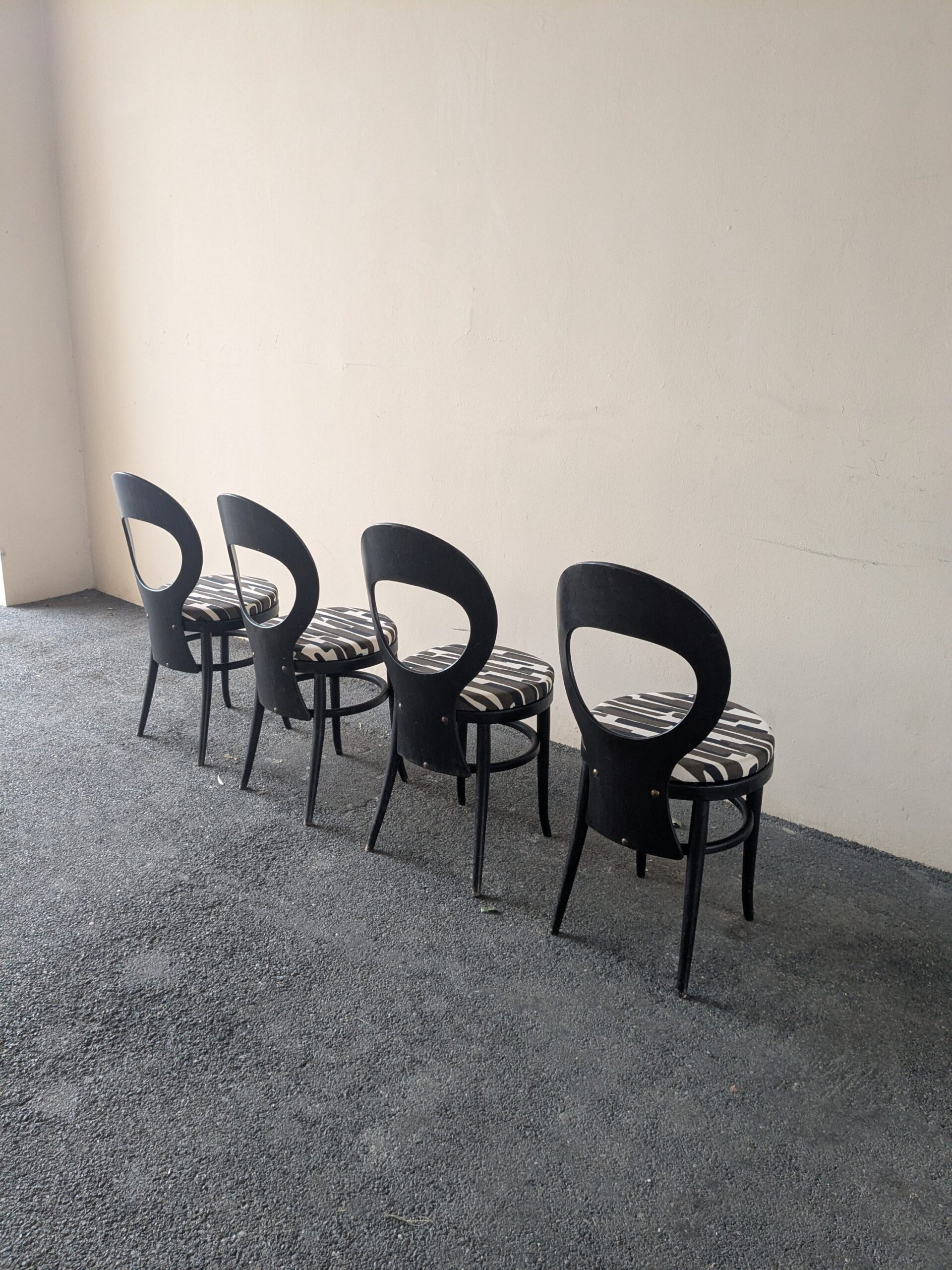 Lot de 4 chaises Baumann noires modèle Mouette. Elles ont été remises à neuf : le tissu et la mousse sont neufs et la structure a été nettoyée.