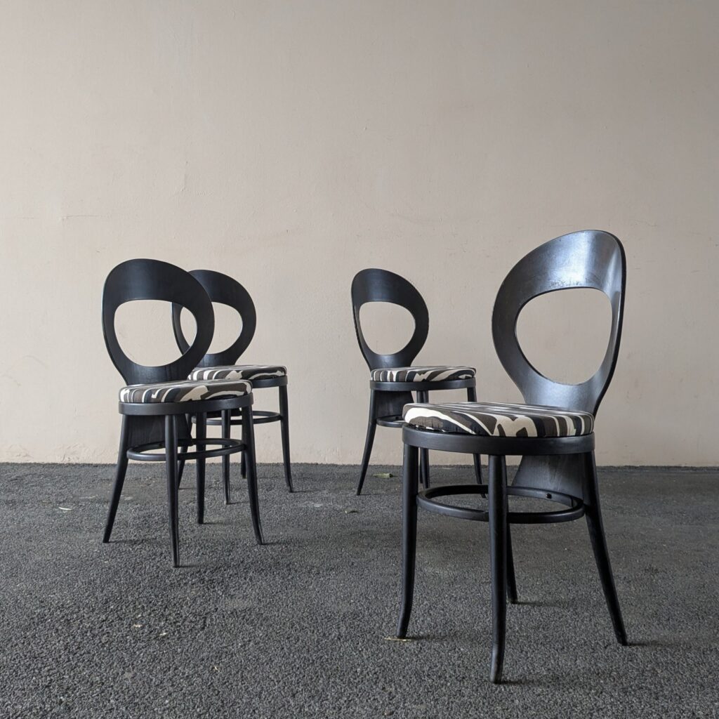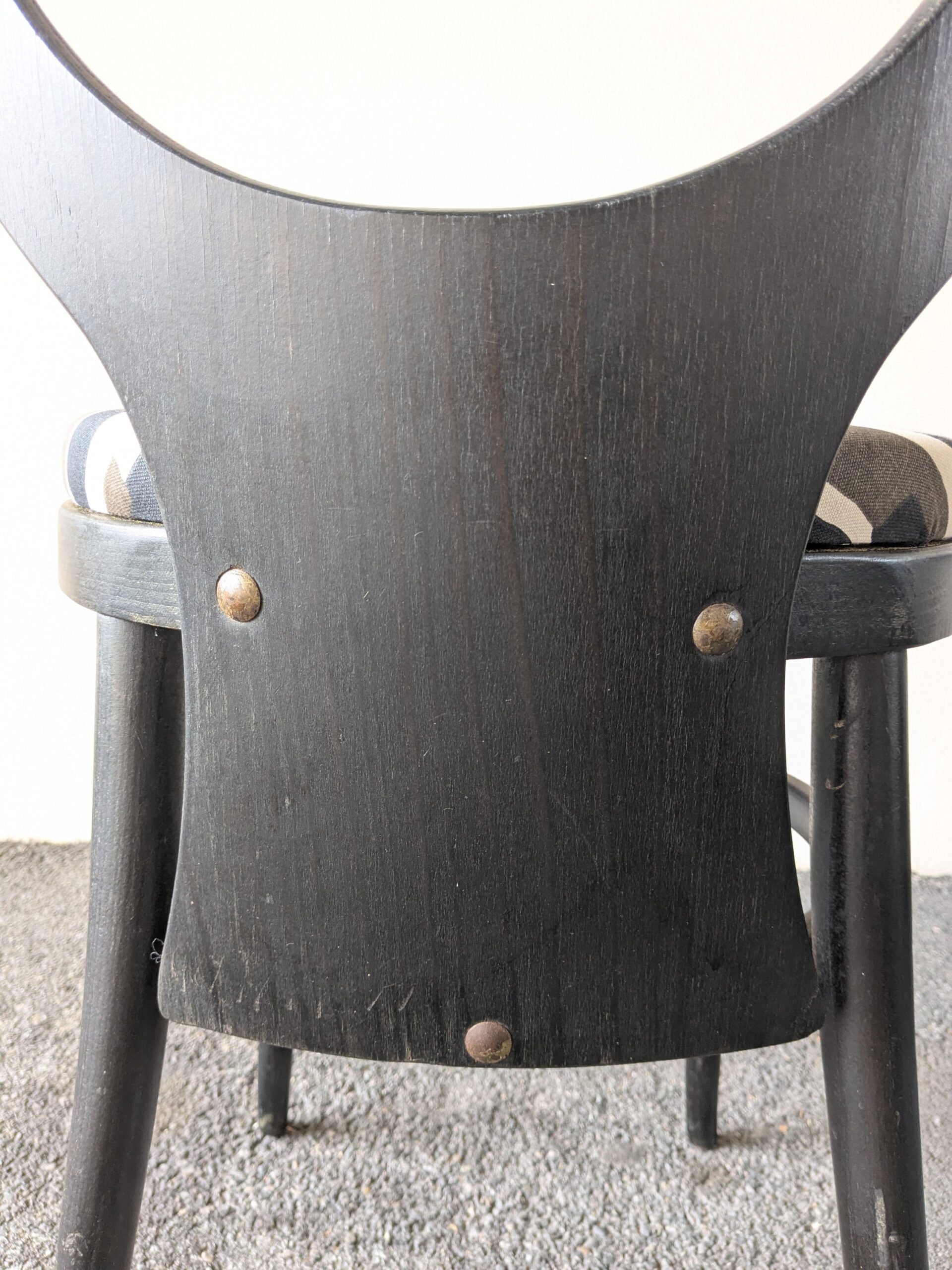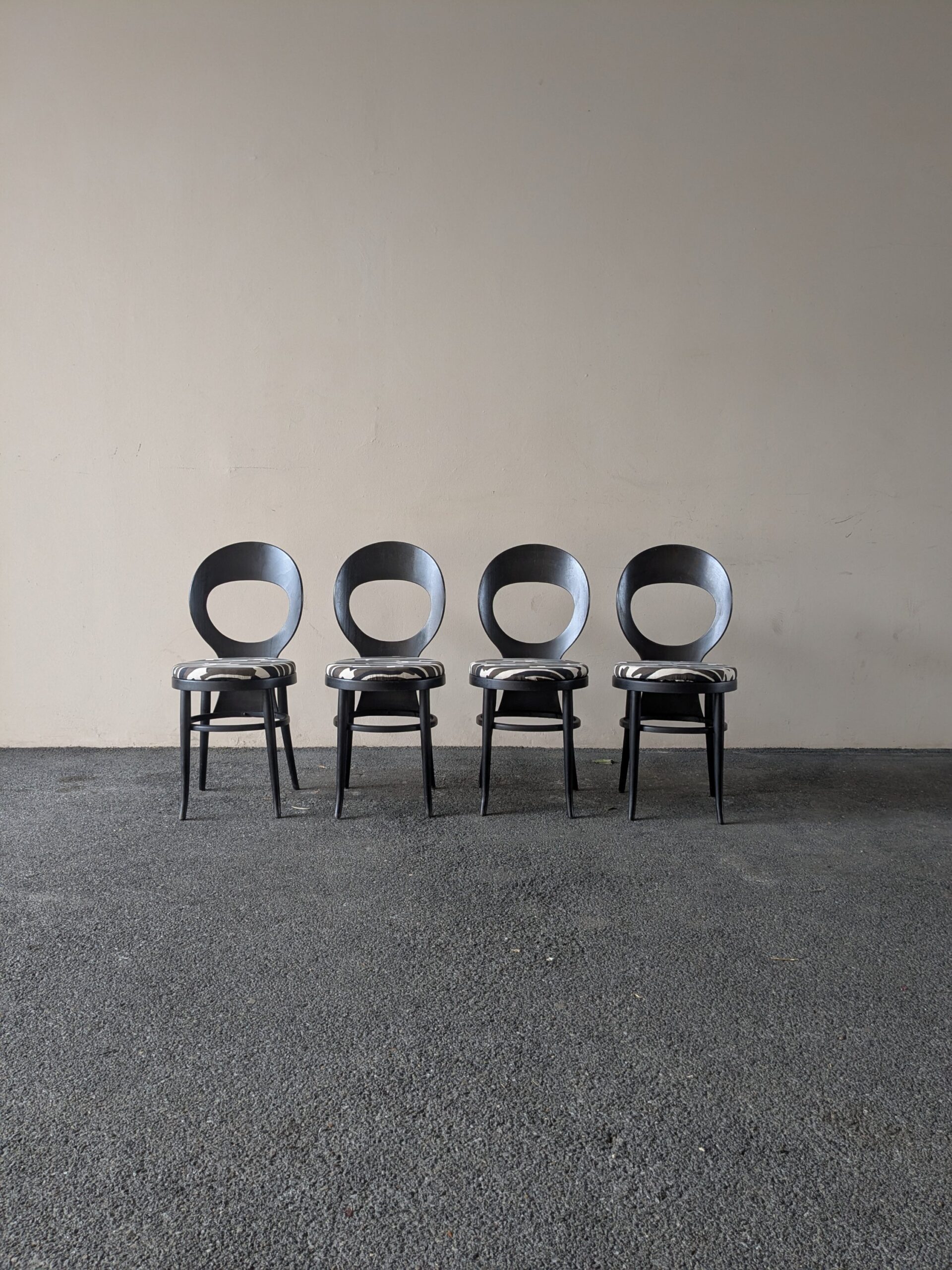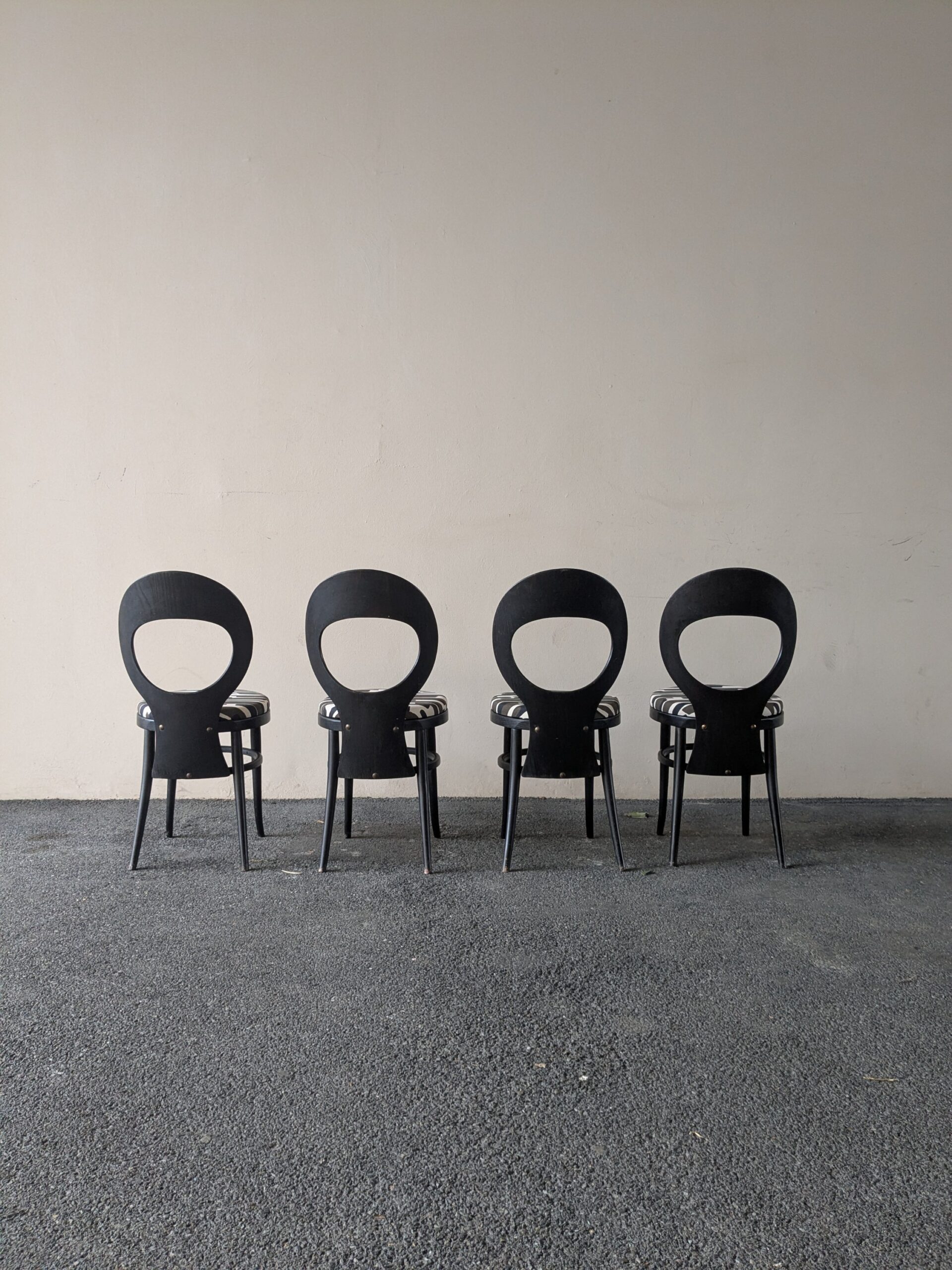 Lot de 4 chaises Baumann noires modèle Mouette. Elles ont été remises à neuf : le tissu et la mousse sont neufs et la structure a été nettoyée.
