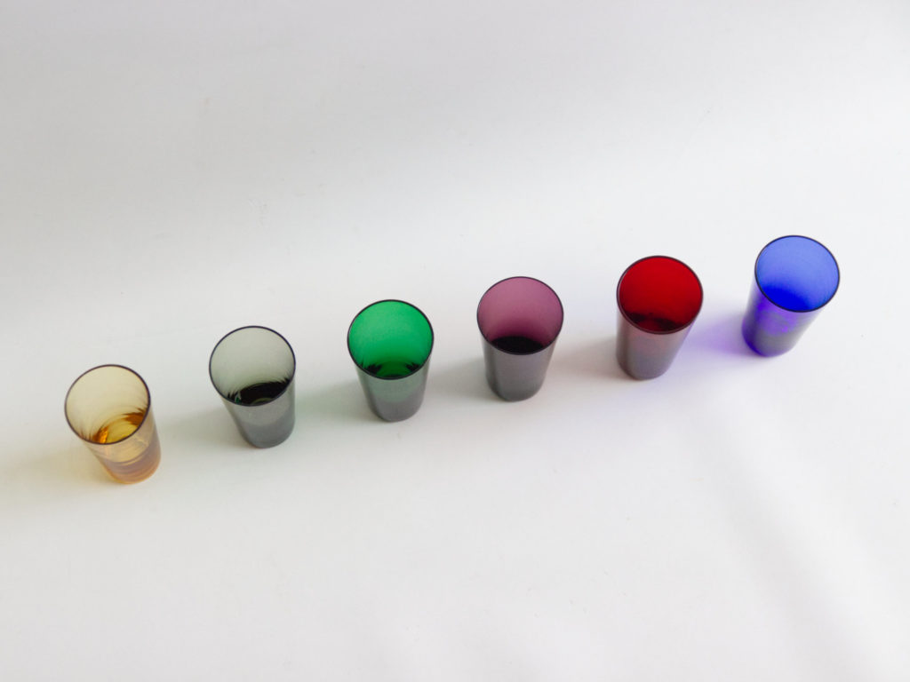 6 petits verres colorés