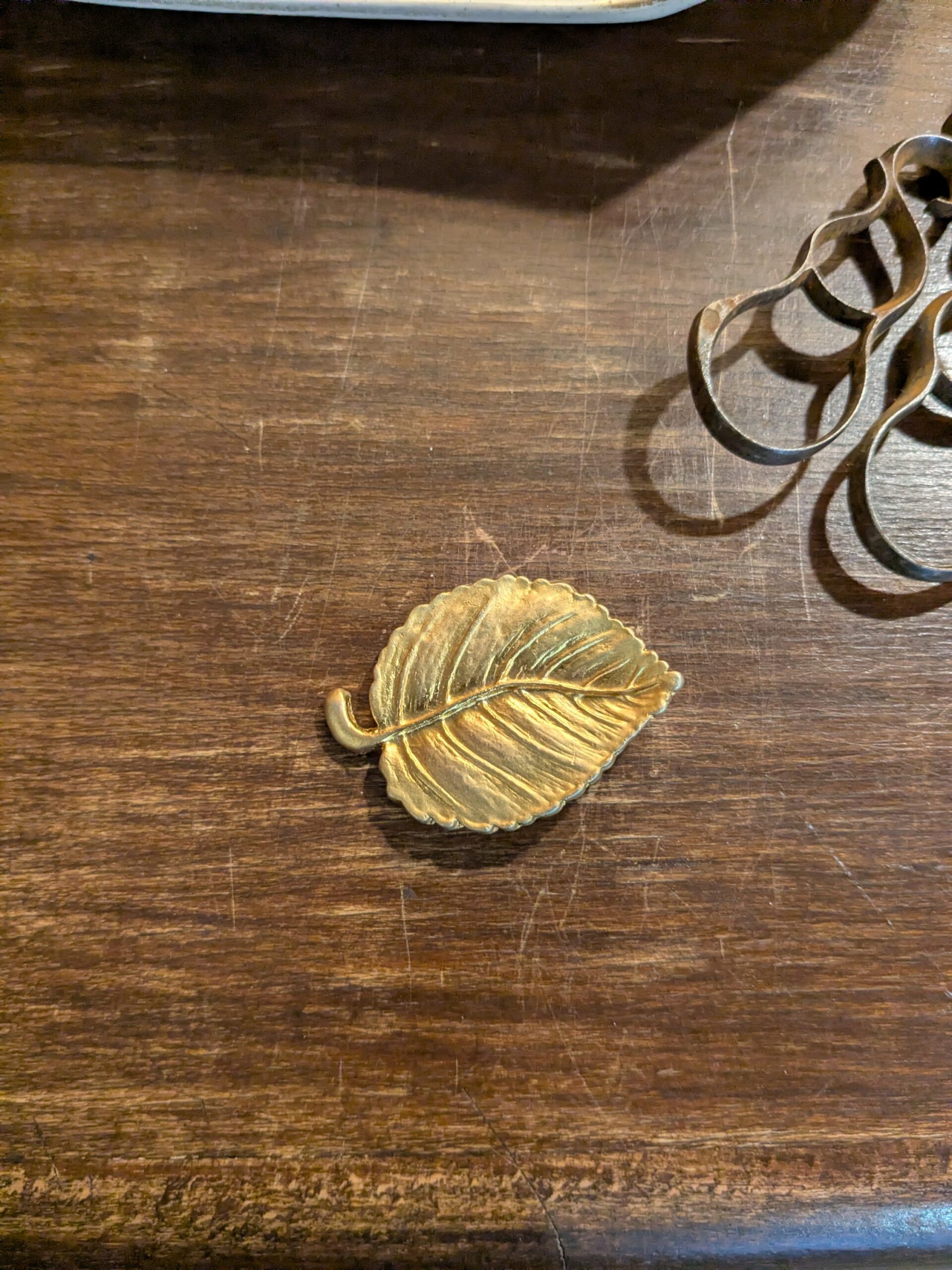 50€Collier ancien en étain d’époque Art nouveau, motif de feuilles de ginkgo. Bon état, le fermoir fonctionne bien. Envoi en lettre suivi par la Poste.