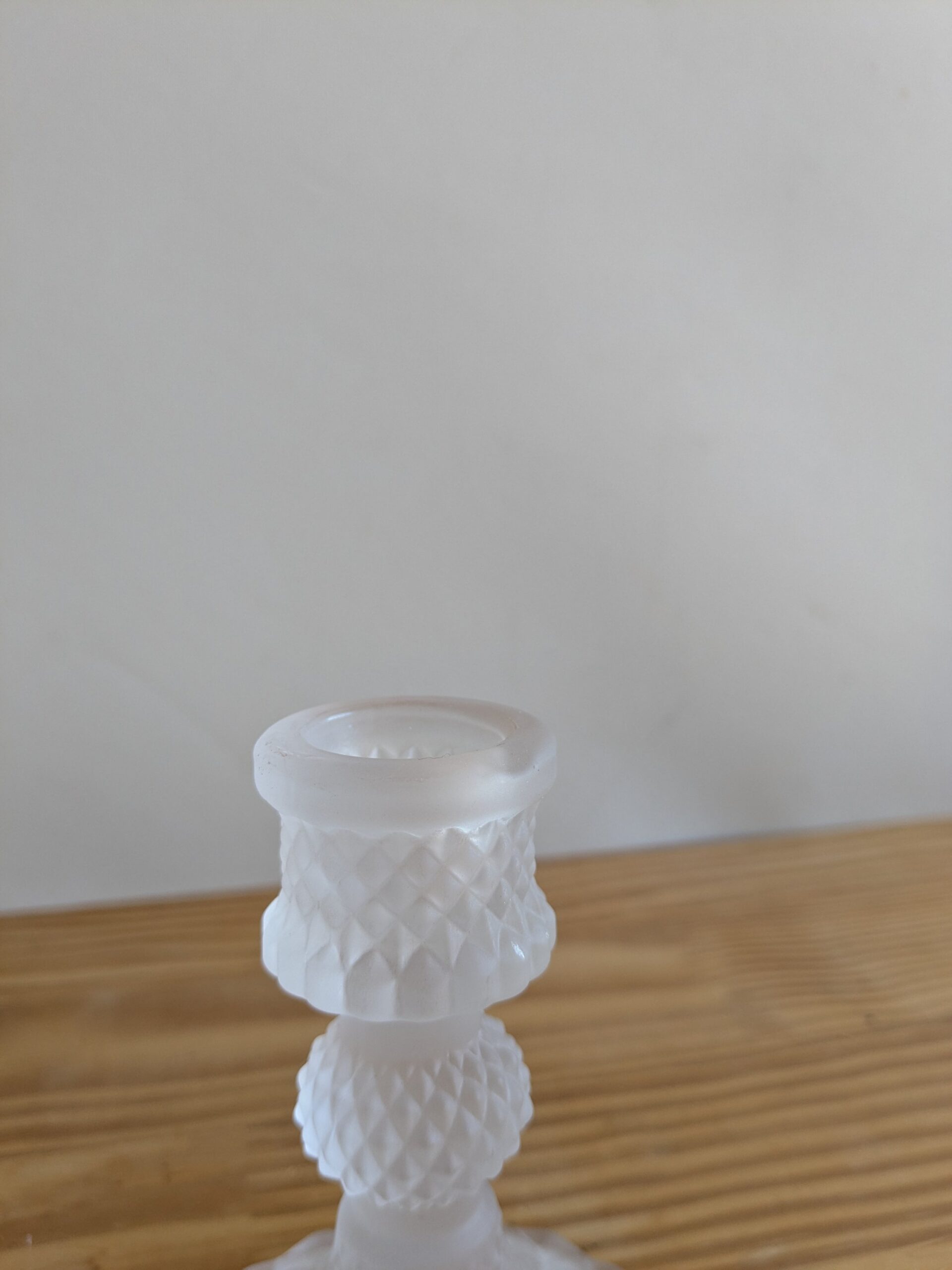 Paire de petits bougeoirs en verre moulé. Parfait état !