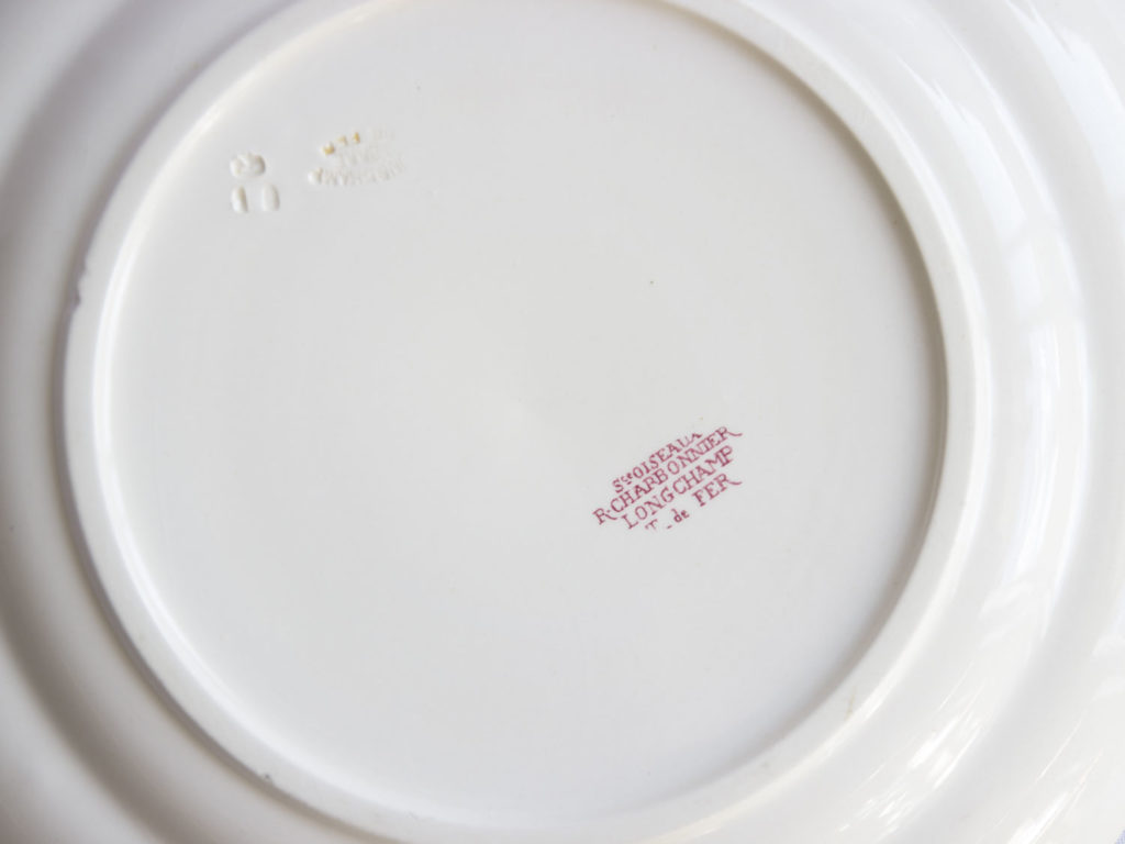 Grand plat au décor d’oiseaux et d’insectes estampillé R. Charbonnier Longchamp Terre de fer modèle oiseaux.